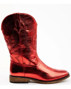 Shyanne Girls’ Little Lasy Floral Embroidered Leather Western Boots – Broad Square Toe
