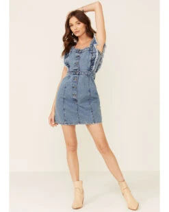 Revel Women’s Fray Edge Ruffled Denim Dress