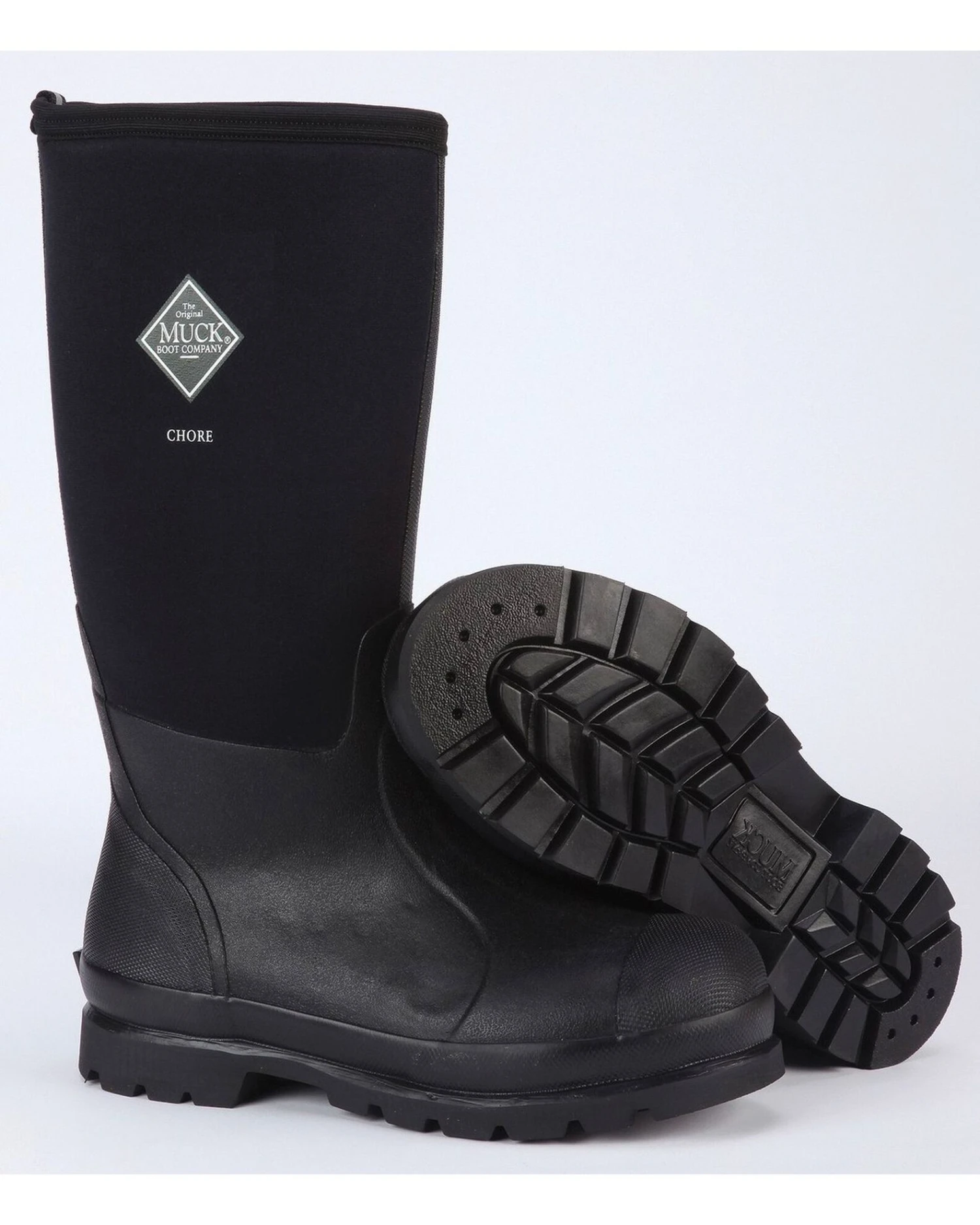 The Original Muck Boot Company? provides comfortable boots for messy and tough conditions. The high Chore All-Conditions Work Boots have all the standard MUCK BOOT features as well as many others to make these boots great for all-around work and chores. The stretch-fit topline snugs the calf to the warmth in and the cold out. A seamless rubber overlay helps to make these boots easy to clean and the lightweight rubber outsole makes them easy to wear all day.