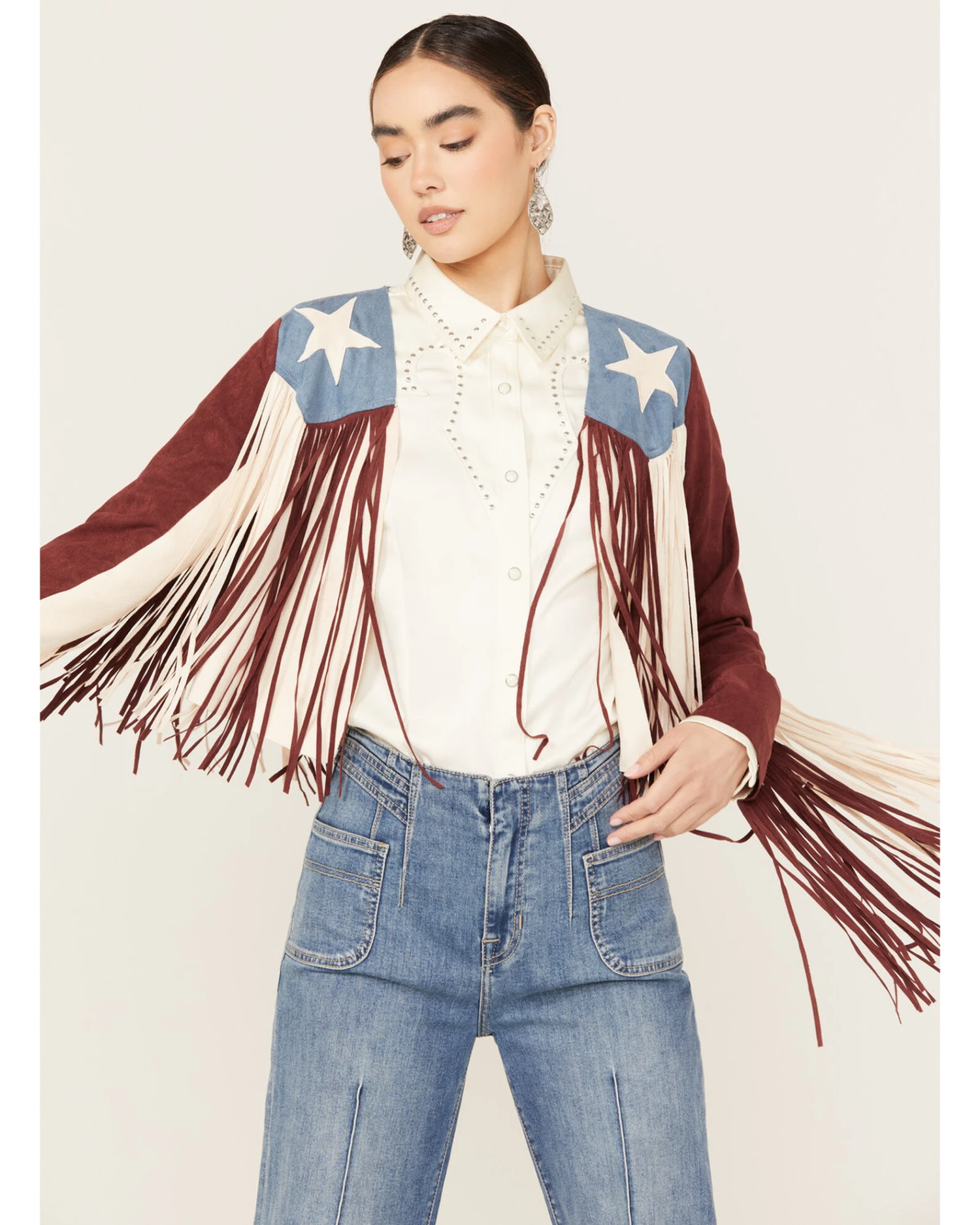 Be the first to review “Vocal Women’s Lainee Star Faux Fringe Jacket” Cancel reply